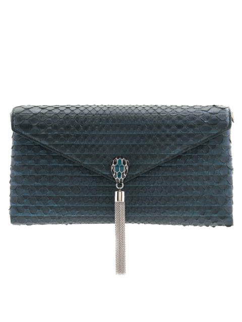 Bvlgari Metallic Teal Python Serpenti Forever Tassel Clutch