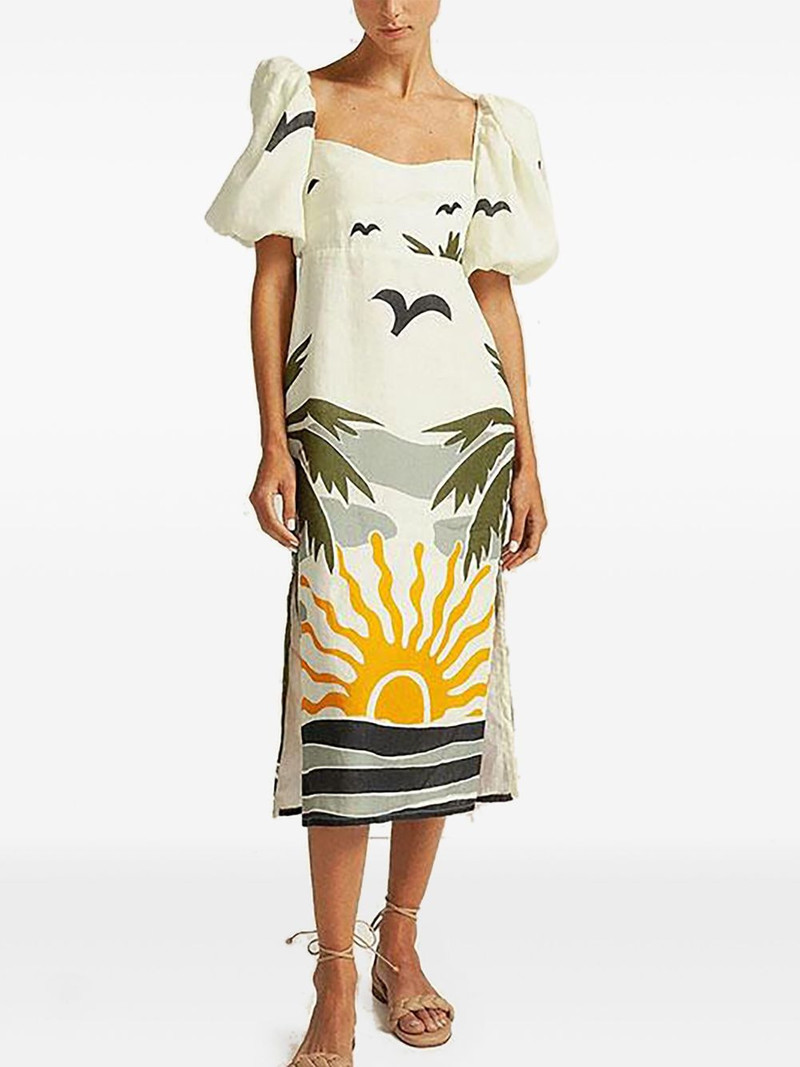 Timbiqui puff-sleeve printed midi dress