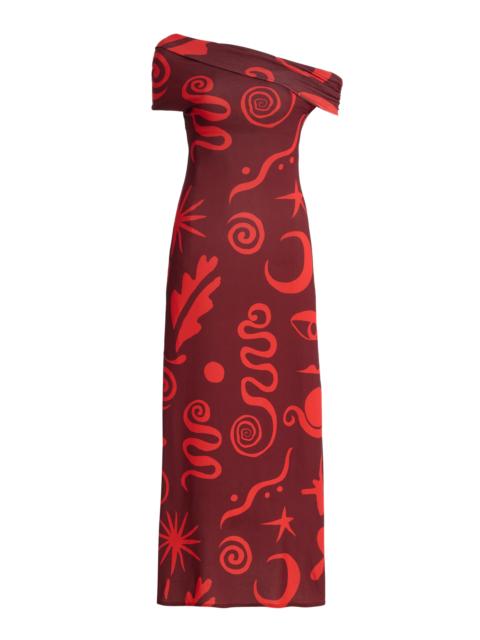 Debora Off-The-Shoulder Printed Jersey Maxi Dress red