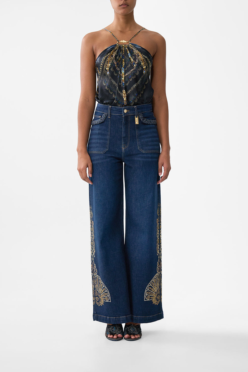 Explore the timeless sophistication of CAMILLA jeans, a must-have in every woman's wardrobe. Our collection of designer women's clothing features a range of stylish jeans from CAMILLA, known for their impeccable fit and premium quality. Elevate your everyday look with these versatile pieces that effortlessly blend comfort and style.