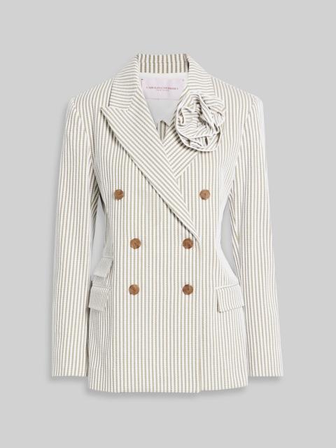 Double-breasted embroidered striped cotton blazer