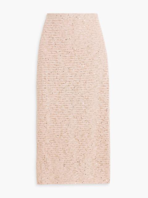 Metallic embellished pointelle-knit cotton-blend midi skirt