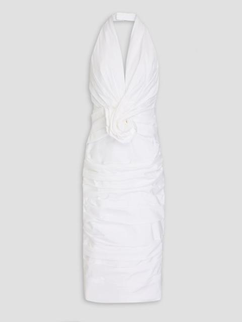 Floral-appliquéd cotton-blend poplin halterneck midi dress