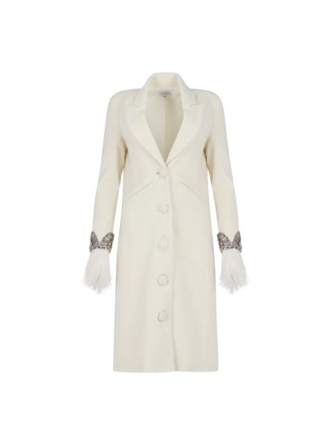 Feather and Crystal'd Wool Coat Cream