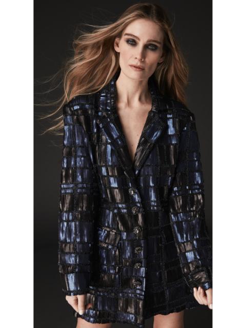 Navy and Black Beaded and Sequin Boyfriend Blazer