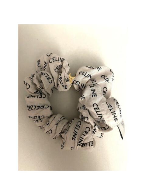 Celine Beige Hair Scrunchie With Gold Triomphe Logo Accent