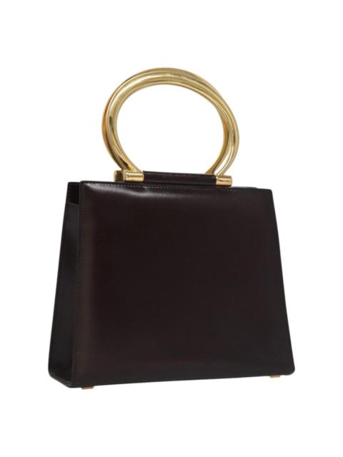 CELINE Hand Bag Straw Leather Blue Cream Gold