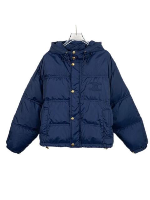 Celine Blue Triomphe Logo Embroidered Hooded Down Jacket