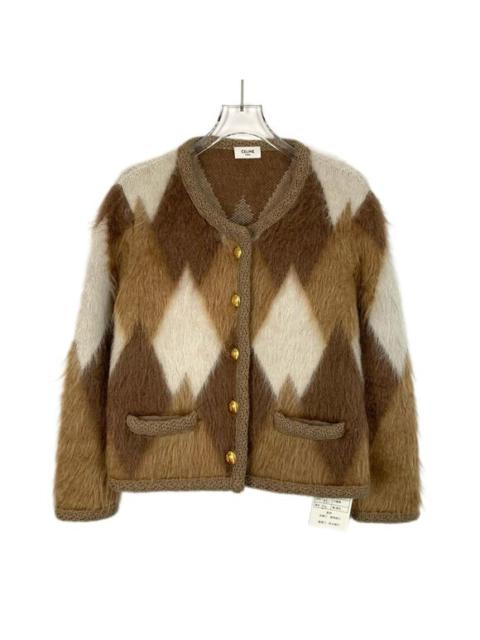 Celine Brown Diamond-Checked Mohair Cardigan Jacket With Gold Buttons XS