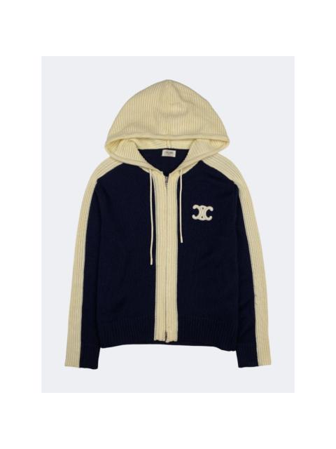 Celine Beige Triomphe Monogram Hooded Half-Zip Hoodie