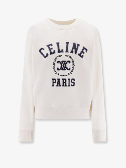 Celine Green Cotton Crewneck Sweatshirt with Logo Lettering