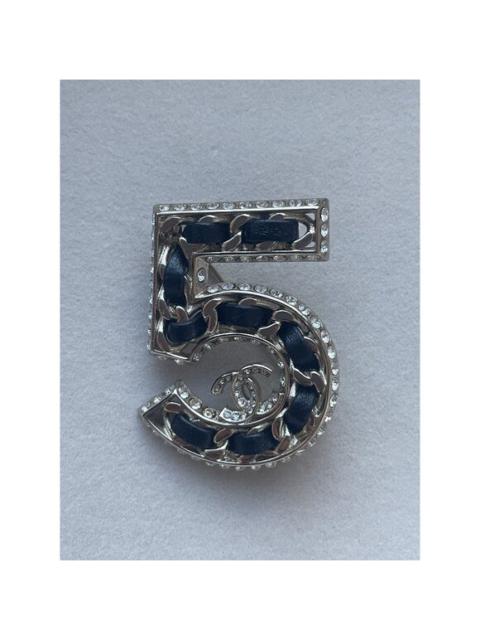 Chanel No. 5-Inspired Brooch With Black Leather & Gold Chain Accents Crystal Det