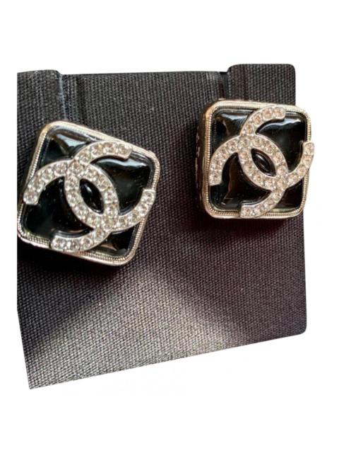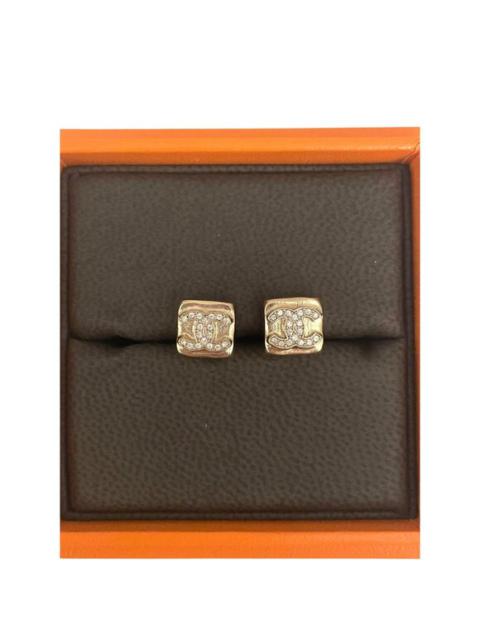 Chanel Gold-Tone Square Stud Earrings With Rhinestone CC Logo Made In Italy