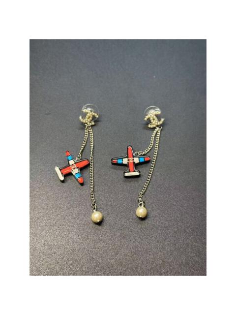 Chanel Airplane Dangle Earrings With Pearl & Chain Accents