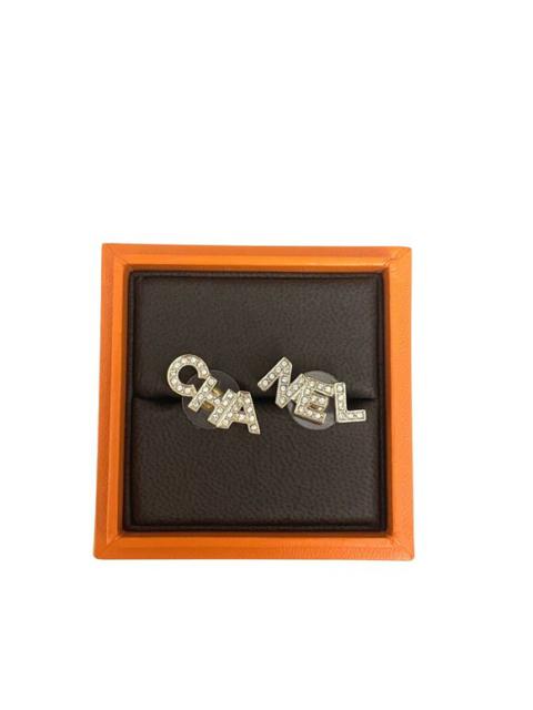 Chanel Crystal-Encrusted CHA & NEL Gold-Tone Earrings With Original Box