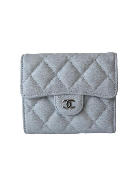 Chanel CC Caviar Quilted Trifold Compact Flap Wallet With Zipped Light Blue