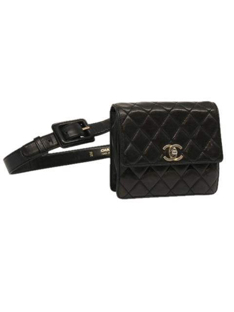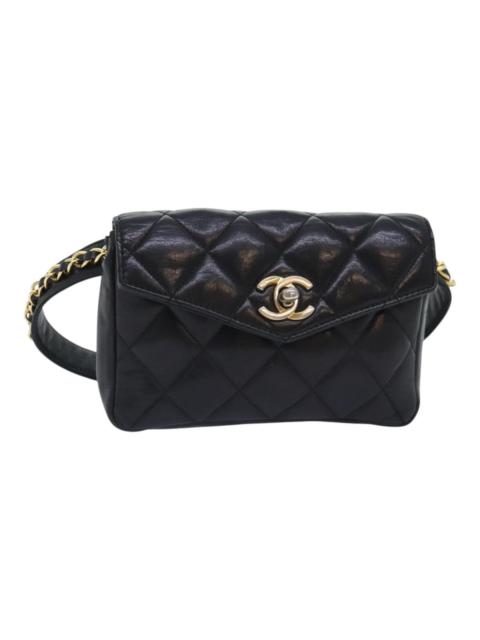 CHANEL Matelasse Turn Lock Waist Bag Lamb Skin Black CC