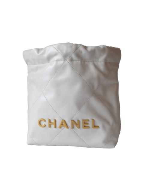 Chanel Shiny Calfskin Quilted Mini Chanel 22 Tote Bag Gold Hardware White