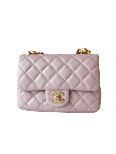 Chanel Shiny Lambskin Quilted Pearl Twist Square Flap Bag Gold Hardware Light Pink