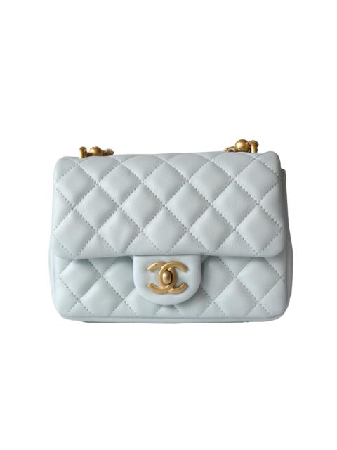 Chanel Shiny Lambskin Quilted Pearl Twist Square Flap Bag Gold Hardware Light Blue