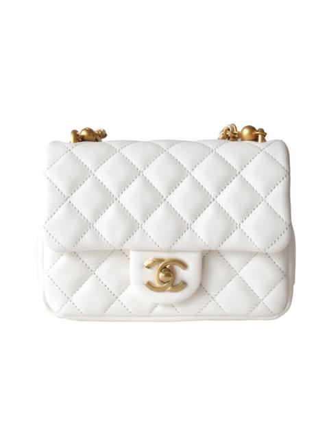 Chanel Shiny Lambskin Quilted Pearl Twist Square Flap Bag Gold Hardware White