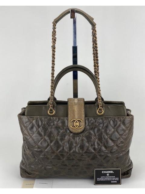CHANEL Vintage Glazed Calfskin Stingray Large Bindi CC Grey Tote Hand Bag preowned