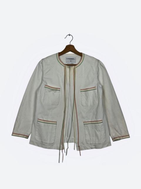 Chanel Navy & White Textured Open Jacket Size 34 Made In France