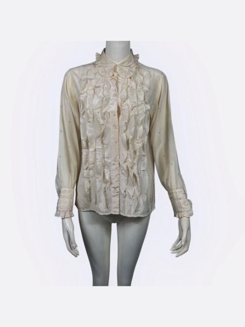 Chanel Vintage-Inspired Sheer White Blouse With Ruffled Yoke & Decorative Button