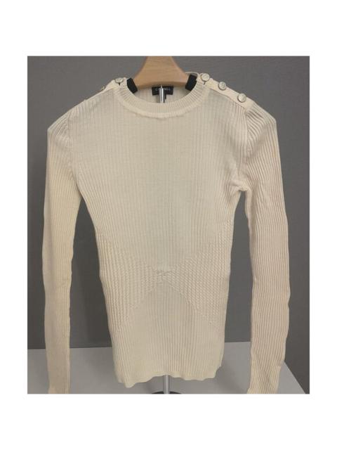 Chanel Cream Ribbed Knit Sweater With Button Shoulder Detail & Textured Design