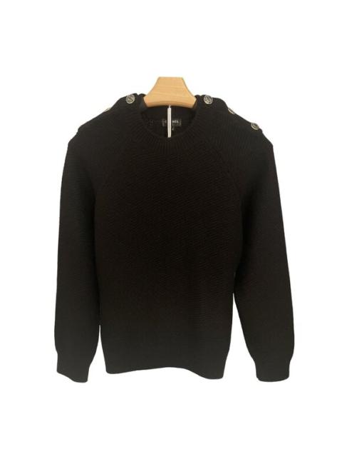 Chanel Black Wool Sweater With Silver Button Details On Shoulders Womens