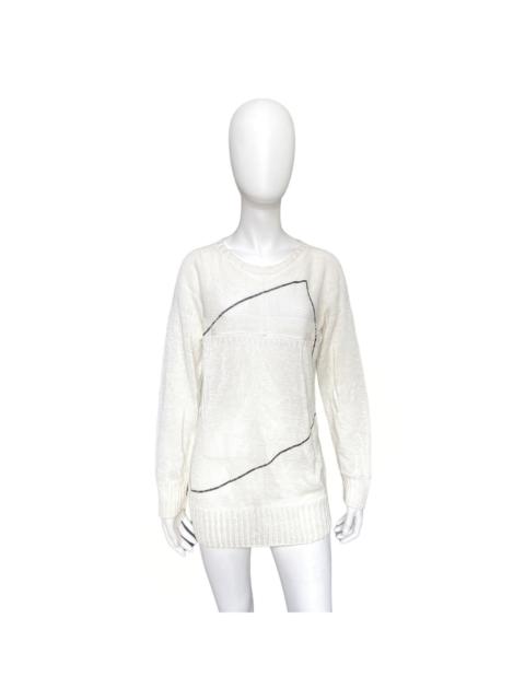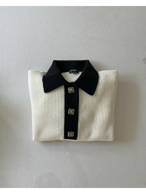 Chanel Cream Ribbed Knit Sweater With Button Shoulder Detail & Textured Design