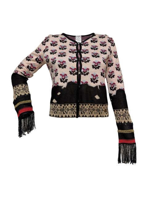 CHANEL Fall Winter 2003 Floral Motif Knit Cardigan with Fringe-Trimmed Sleeves