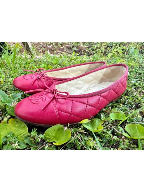 Chanel Beige & Black Leather Ballet Flats With Bow Accents Size 39