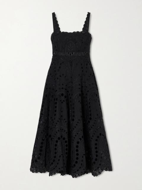 Glimmer Scalloped Broderie Anglaise Cotton-blend Midi Dress