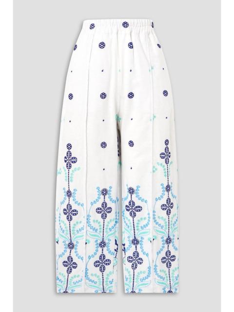 Lya cropped broderie anglaise cotton-blend wide-leg pants