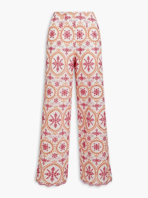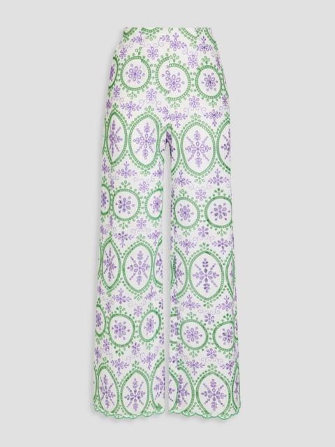 Brigid broderie anglaise cotton-blend wide-leg pants
