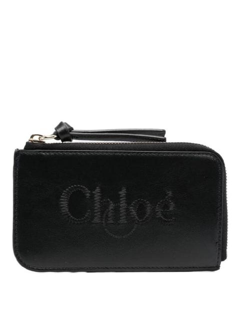 Chloe Embroidered Logo Sense Card Holder In Soft Leather