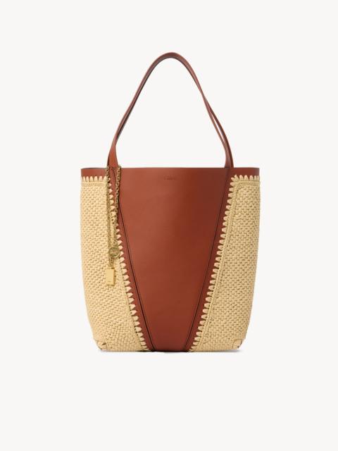 CHLOÉ SPIN TOTE BAG IN RAFFIA-EFFECT & LEATHER