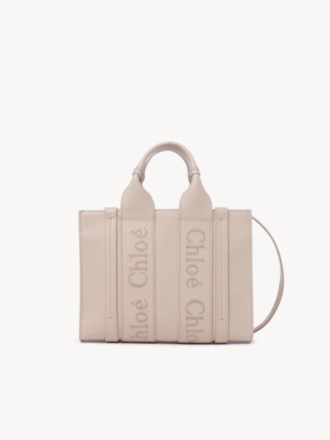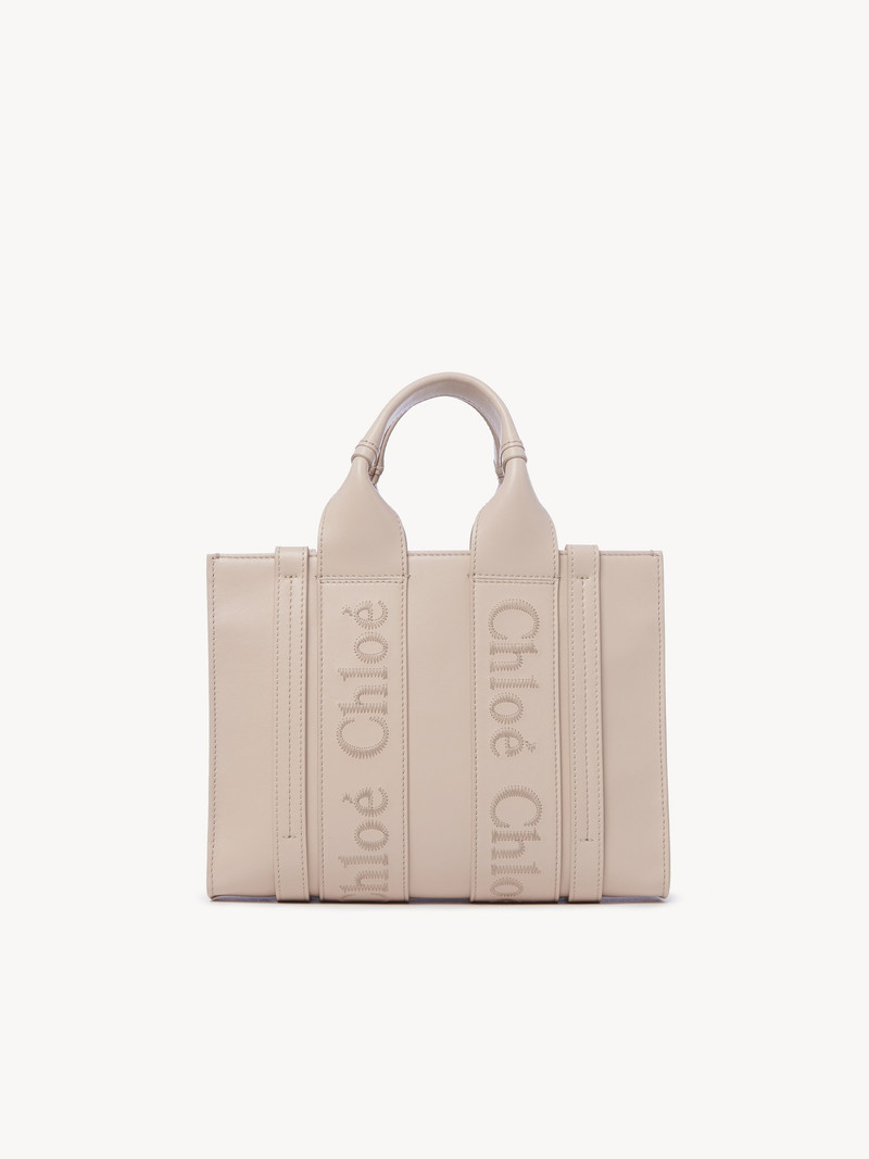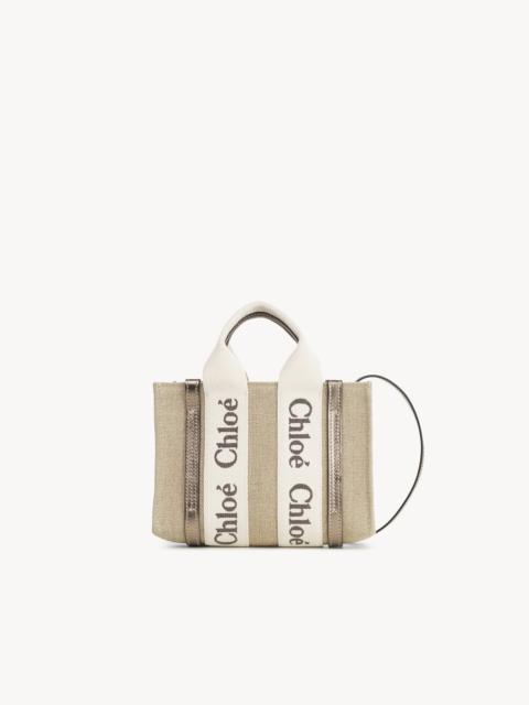 MINI WOODY TOTE BAG IN LINEN & LEATHER