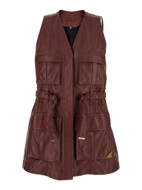Chloé Women Bordeaux Vest With V Neck And Adjustable Belt In Leather Woman