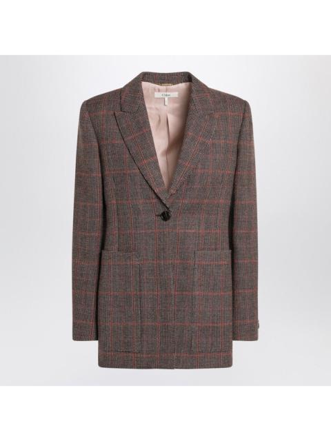 Chloe Single-Breasted Checked Brown Wool Jacket Women