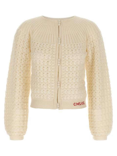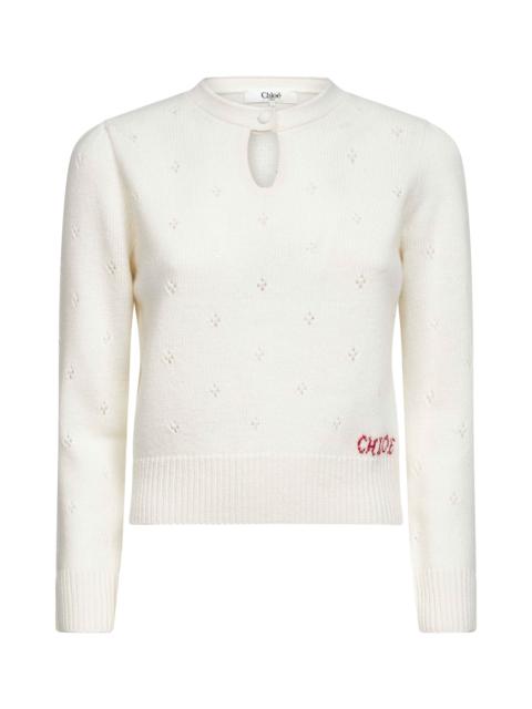 Chloé Women Ivory Openwork Knit Fitted Sweater