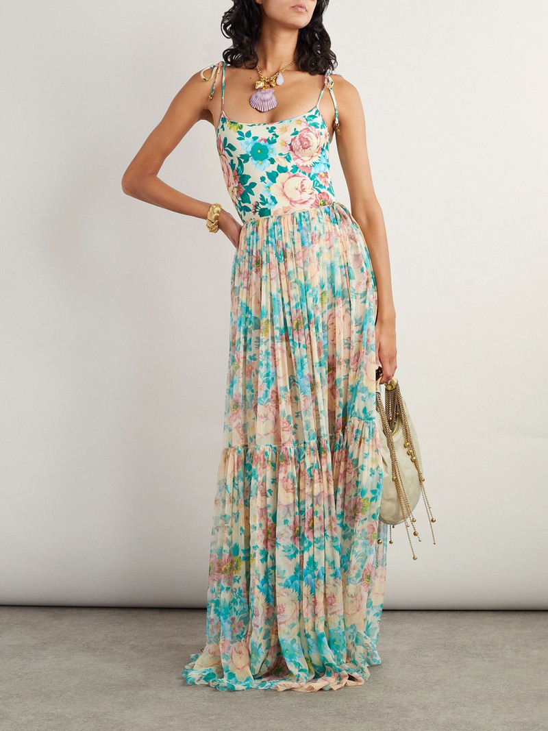 Embellished floral-print swimsuit Blue