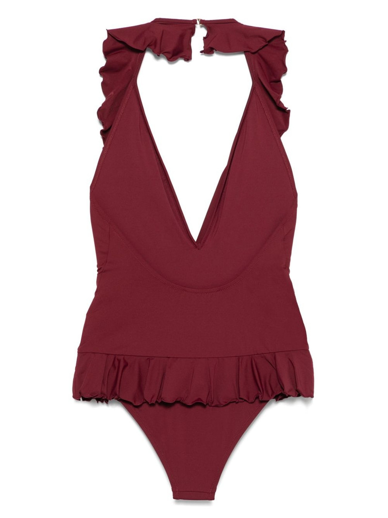 ruffled V-neck swimsuit