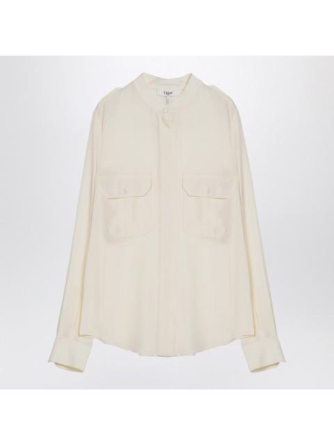 Chloe Ladies White Cotton Poplin High-Neck Shirt