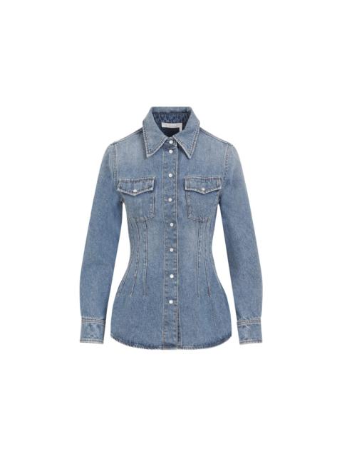 Chloé Dual Tone Linen Broderie Anglaise Blouse