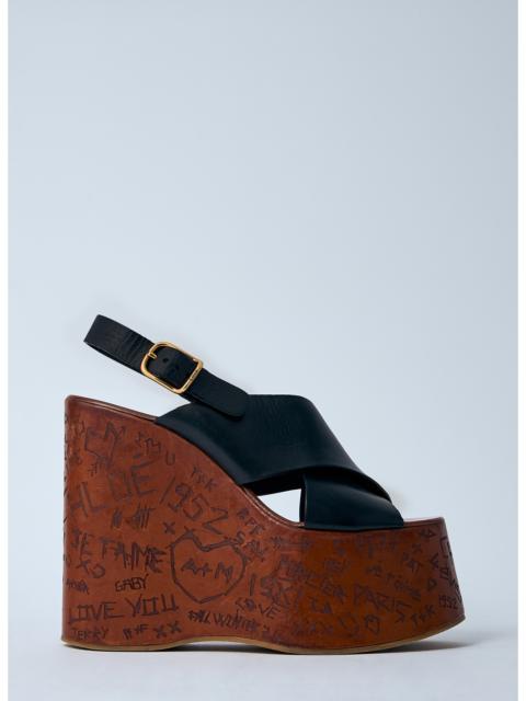 Chloé Women 'Maxime' Black Wedge With Engraved Written Decorations And Logo Buckle In Leather Woman