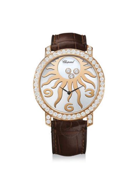 Chopard Happy Sun Diamond 18 kt Rose Gold Sun Brown Leather Ladies Watch 207470-5007