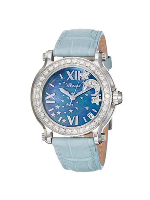 Chopard Happy Sport Blue MOP Dial Blue Leather Floating Diamond Moon Ladies Watch 278475-2001