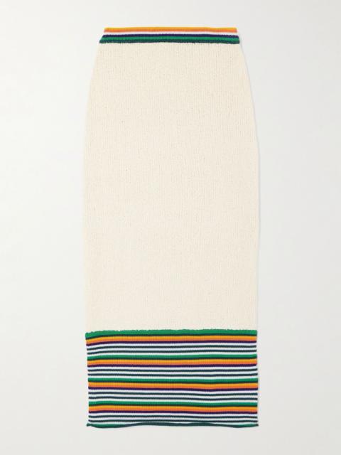 - CHRISTOPHER JOHN ROGERSStriped cotton-blend bouclé midi skirt Off-white